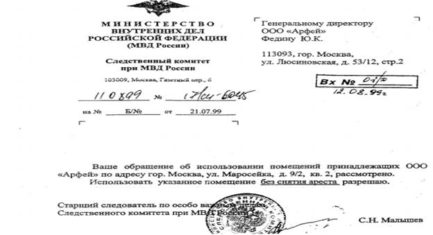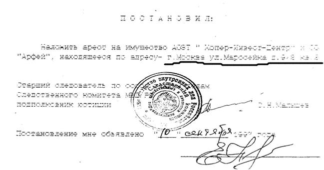 Это легендарный следователь Малышев накладывает арест на квартиру по ул. Маросейка.