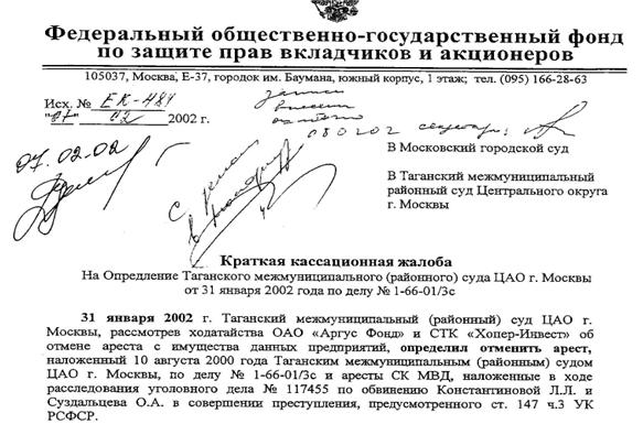 Деньги на подкрепление "пирамидальных расследований" были  выделены ФКЦБ американцами (любопытно, да?). Руководитель контрольно-ревизионной службы ФКЦБ Е. Мысловский рассказывает:"Наша служба совместно со следственными органами проводила выемки документов. Всю информацию мы передали в Генпрокуратуру. Ни ответа, ни привета. Значит, это было кому-нибудь нужно. По делу Ходорковского, например, счета в швейцарских банках арестовали в один миг."