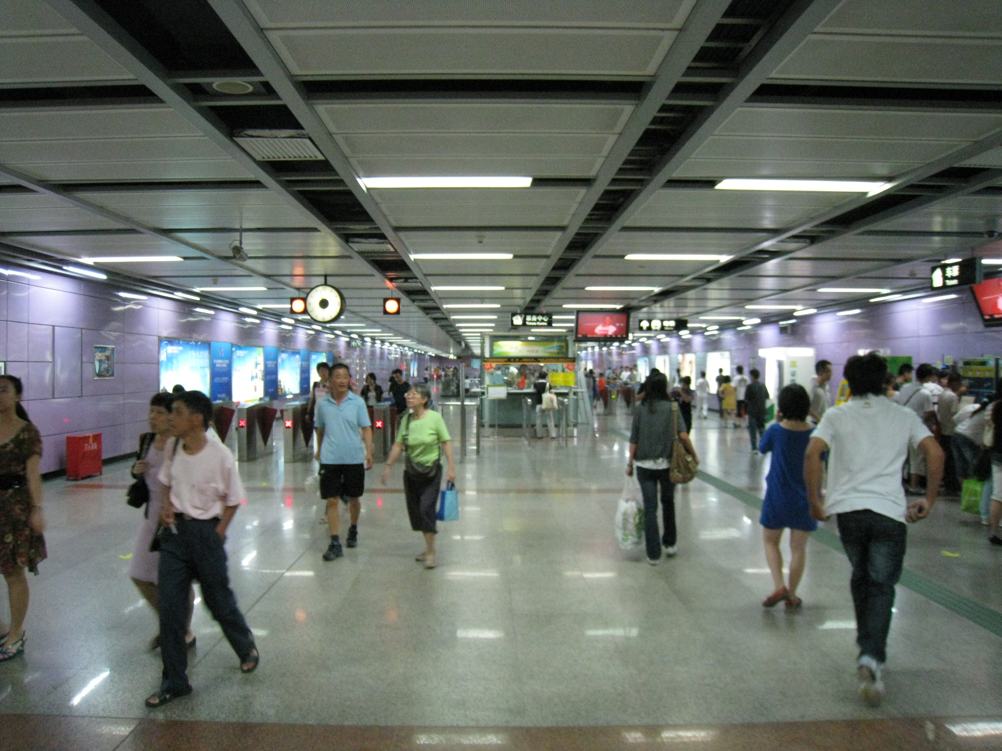 Метро в Китае появилось совсем недавно, поэтому вобрало в себя все новшества, которые имеются в мире. Кондиционированные, сплошные вагоны, ЖК телевизоры, сидения из нержавеющей стали, бесшовные рельсы, а следовательно бесшумный ход, обеспеченный прием мобильной связи.В вестибюлях метро - магазинчики, в которых можно купить все необходимое: От воды - до одежды.