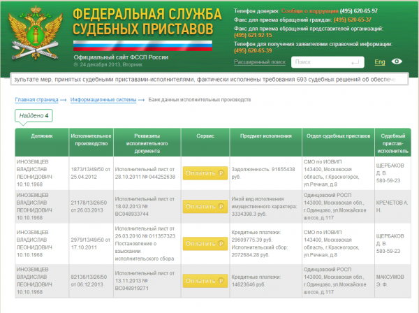 Для понимания морали российских либеральных деятелей достаточно зайти на сайт Службы судебных приставов РФ и обнаружить, что Иноземцев Владислав Леонидович (зарегистрирован в Московской области) по состоянию на 24.12.2013 только по четырем исполнительным листам российских судов за период с 2010 года имеет неоплаченных долгов на 141,3 млн.руб. - примерно 4,3 млн.долл..