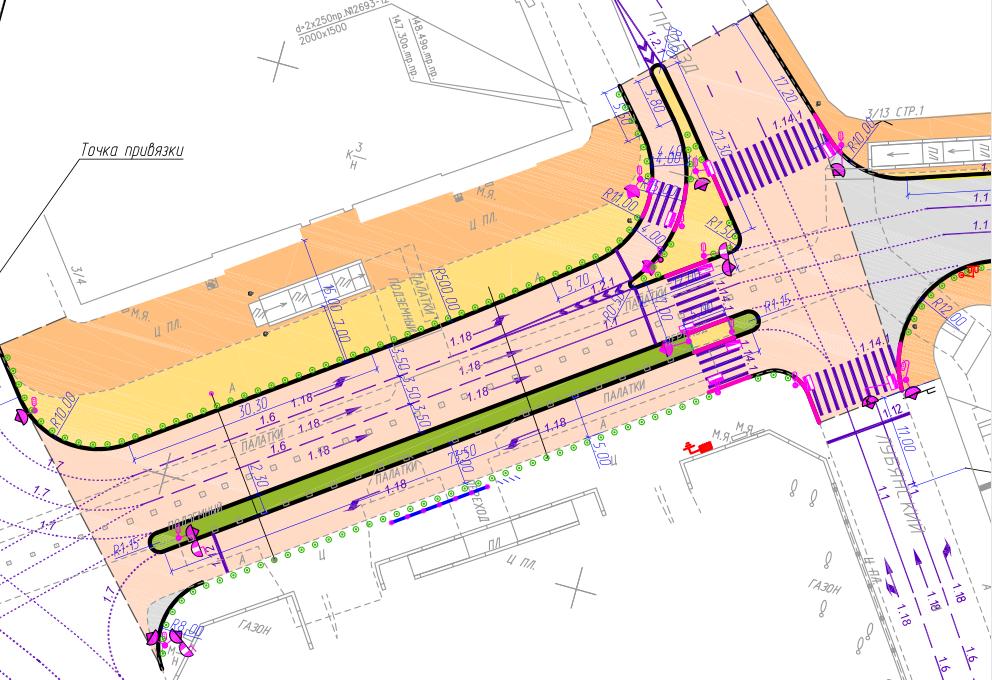 На схеме обнаружился кусочек «благоустройства» соседнего района, а именно – пространства между Политехническим музеем и Памятником героям Плевны.