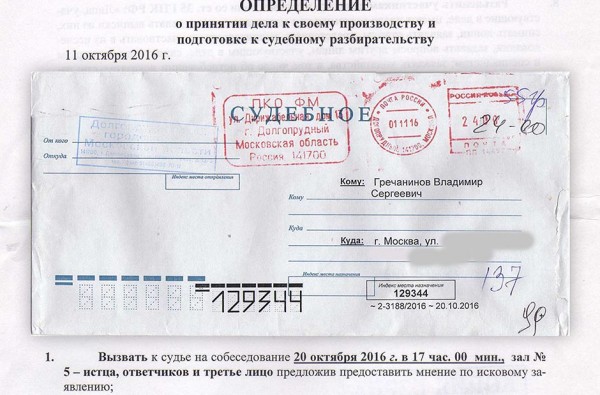 История была такая - отправил я в долгопрудненский суд ценным письмом несколько документов: замечания на протокол и др. Люди, знакомые с родной судебной системой, знают, как важно вовремя оспорить протокол, в котором нередко попадаются не только отдельные неточности, но и просто наглое вранье.