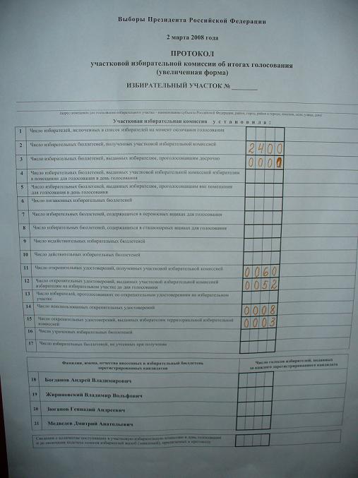 Вобщем насмотрелся. И еще с предыдущей кампании учел одну вещь : не надо лезть нарожон. Ведь один из главных этапов - получение копии протокола и до него стоит доситель, а не быть выкинутым раньше времени как собака с избирательного участка.