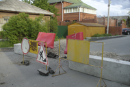 лица Гвардейская перегорожена бетонными блоками вроде как временно, но знаки запрещающие установлены уже постоянно. А с 29 апреля перекресток Татьяничевой - Гвардейская перекопан, здесь как бы дорожные работы ведутся. Но местные говорят, это такая "хитрость", чтобы и здесь еще закрыть лазейку для въезда. Потому что они уже обращались в администрацию, но воз и