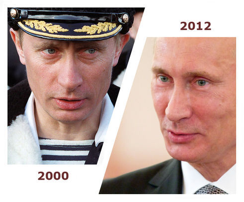 Вот газета «Ведомости» дает невинный фоторепортаж о том, как изменила старость политиков за 12 лет нахождения их рядом с путиным http://www.vedomosti.ru/politics/photogallery/50311/50701#title. Первым, разумеется, даны два портрета самого путина. Интересно, что сведения о том, что у Путина есть двойник, появились еще до того, как он стал президентом. Во всяком случае, я читал репортаж с его предвыборной встречи, в котором журналист ехидно сообщал, что когда Путин после встречи вышел из парадного подъезда и сел в кортеж, спустя некоторое время с черного хода вышел еще один путин и сел в машину охраны.