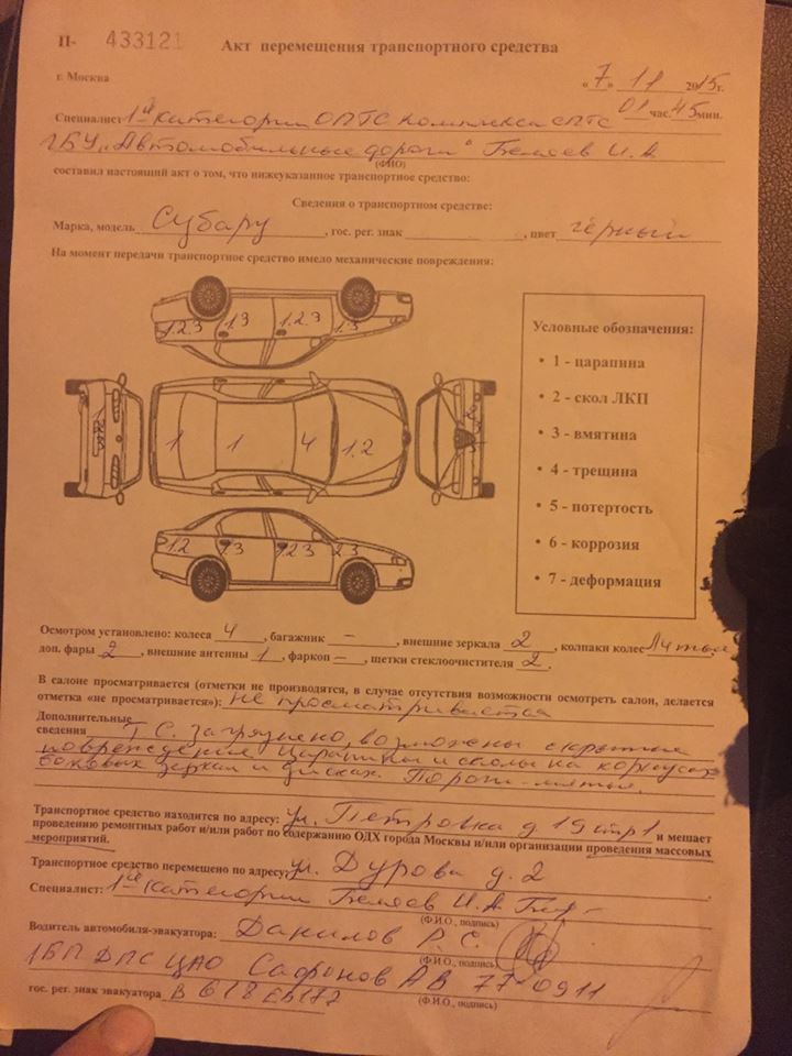 Наконец, удалось выяснить, что машины эвакуируют на ул. Дурова, дом 2. Приехав по этому адресу, мой друг потом еще два часа ждал неизвестно где кружившего по городу эвакуаторщика. Зато видел, как тот выгружает его автомобиль. Нет, не выгружает – скорее, выбрасывает, швыряет с платформы. С силой ударившись колесами об асфальт, машина подпрыгнула. От неприятного разговора и возможных повреждений физиономии эвакуаторщика спасли только сотрудники ГИБДД. Вот тут за соблюдением законности они следили добросовестно, не придерешься!
