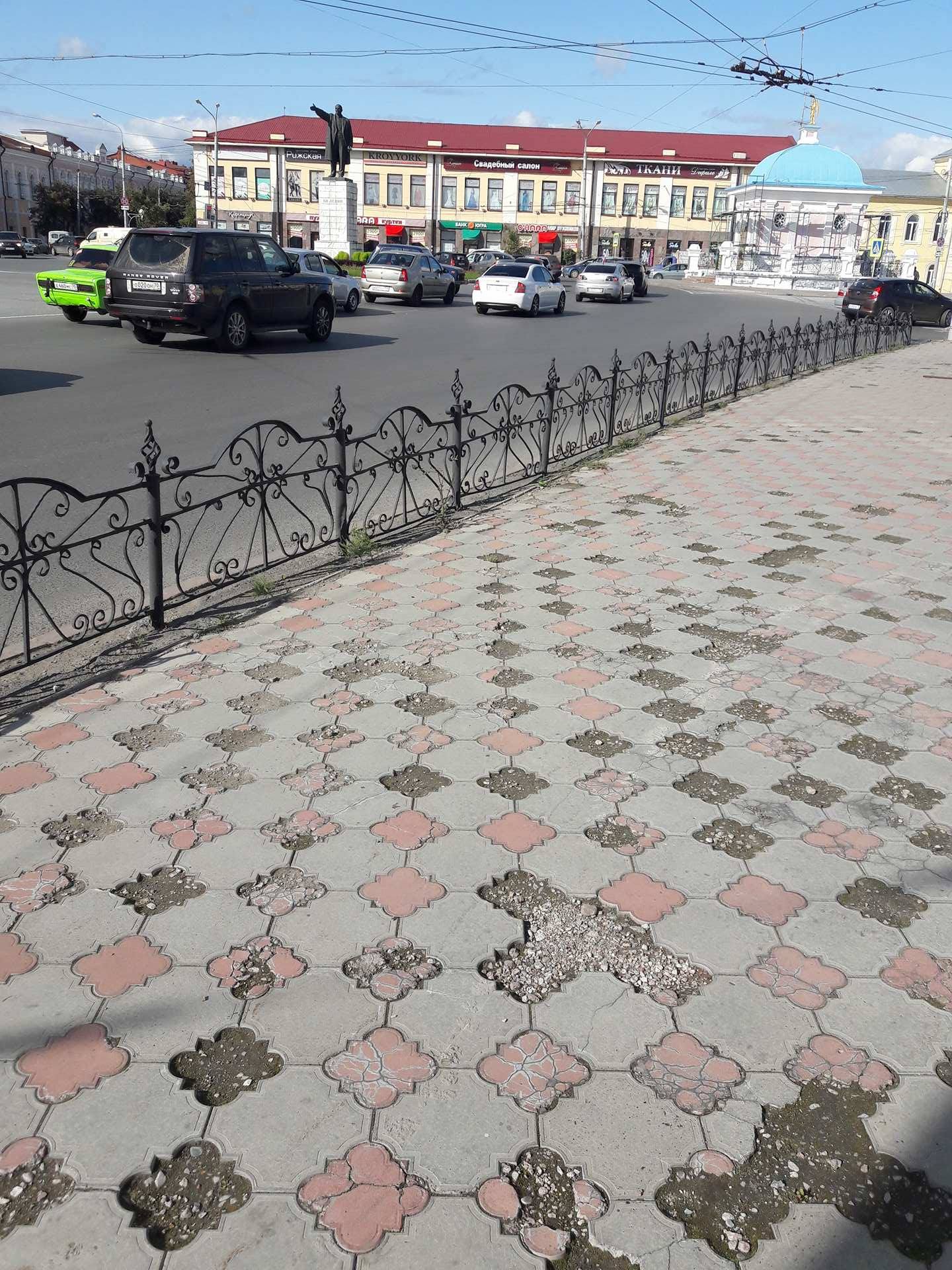 Повод конечно же имеется - чтобы менять плитку. Ибо вот так сейчас она выглядит, и это в паре шагов от местного Белого дома и центрального офиса строительно-олигархической ТДСК, донорши "Единой России" (да-да, "Белый Дом" - народное прозвание с 1991-го, после которого губернатором и стал демократ-"выкрест", обкомовец Кресс).