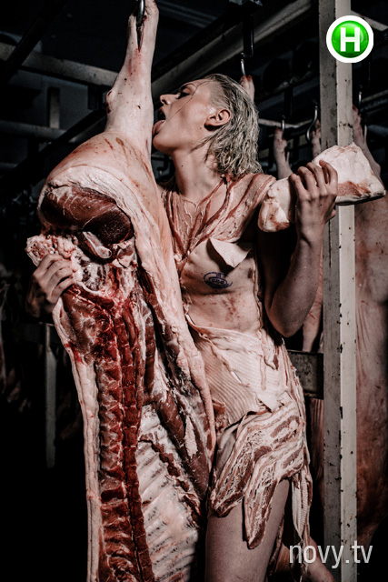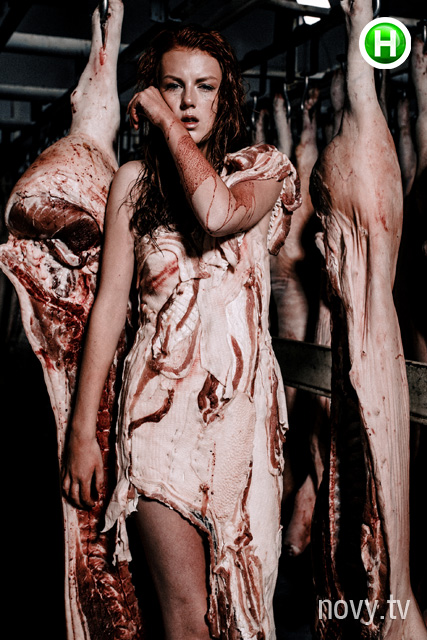 В то же время в Киеве организаторы шоу «супермоделей» обязали девушек (не пожалев даже вегетарианку) носить одежду из мяса и жира убитых животных и позировать на бойне на фоне их туш.