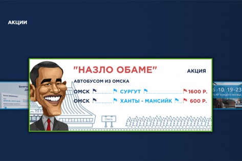 Омская транспортная компания «Северок» объявила о снижении цен на автобусные рейсы в Сургут и Ханты-Мансийск под лозунгом «назло Обаме». Как сообщает НГС.Омск, реклама акции появилась на сайте компании и на стенах зданий. Рядом с информационным сообщением размещен шарж на президента США Барака Обаму. Рекламу начали публиковать в первой половине февраля.