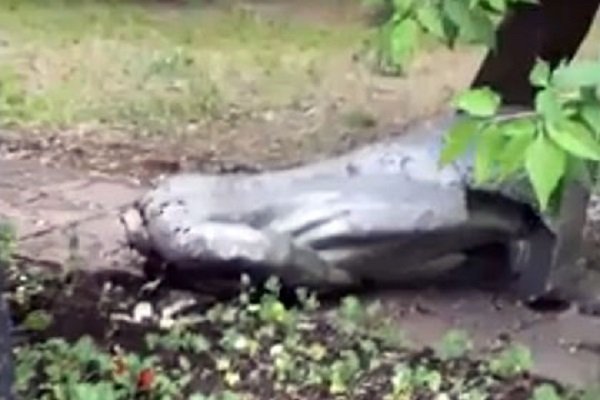 Как сообщает Life, рядом с памятником был обнаружен кусок веревки, при помощи которой сбросили памятник.