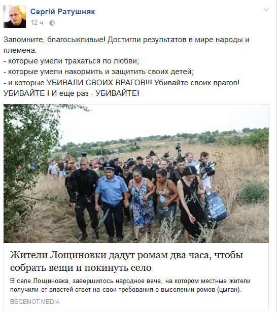 «Убивать» призвал дважды городской глава Ужгорода и бывший кандидат в президенты Сергей Ратушняк. На своей странице в соцсети, он объяснил украинцам, какие «народы и племена» «достигали результатов».