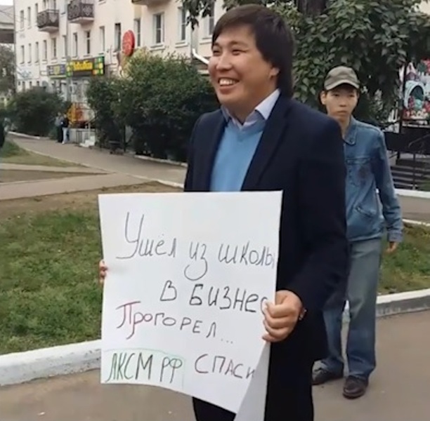 В столице Бурятии Улан-Удэ полицейские задержали двух местных жителей, которые в среду около Бурятского госуниверситета встречали приехавшего в регион премьер-министра Дмитрия Медведева. Как сообщает елекомпания «Ариг Ус», молодые люди на расстоянии примерно трёх метров друг от друга встали с плакатами «Денег нет. Держимся. Настроение плохое» и «Ушёл из школы в бизнес. Прогорел. Спасибо.»
