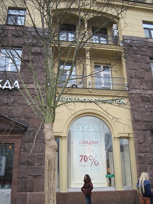 Или вот, у бывшего магазина «Наташа». Да, деревья на Пушкинской площади и на улице Горького – росли, тут горе-озеленители не ошиблись адресом. Но не в этом месте росли они – и нелепее место найти просто невозможно, ведь тут всегда толкучка, ещё с перестроечных времён, когда Горби решил вместо «Лиры» сделать, так сказать, окно в «цивилизованное общество» - Макдональдс…