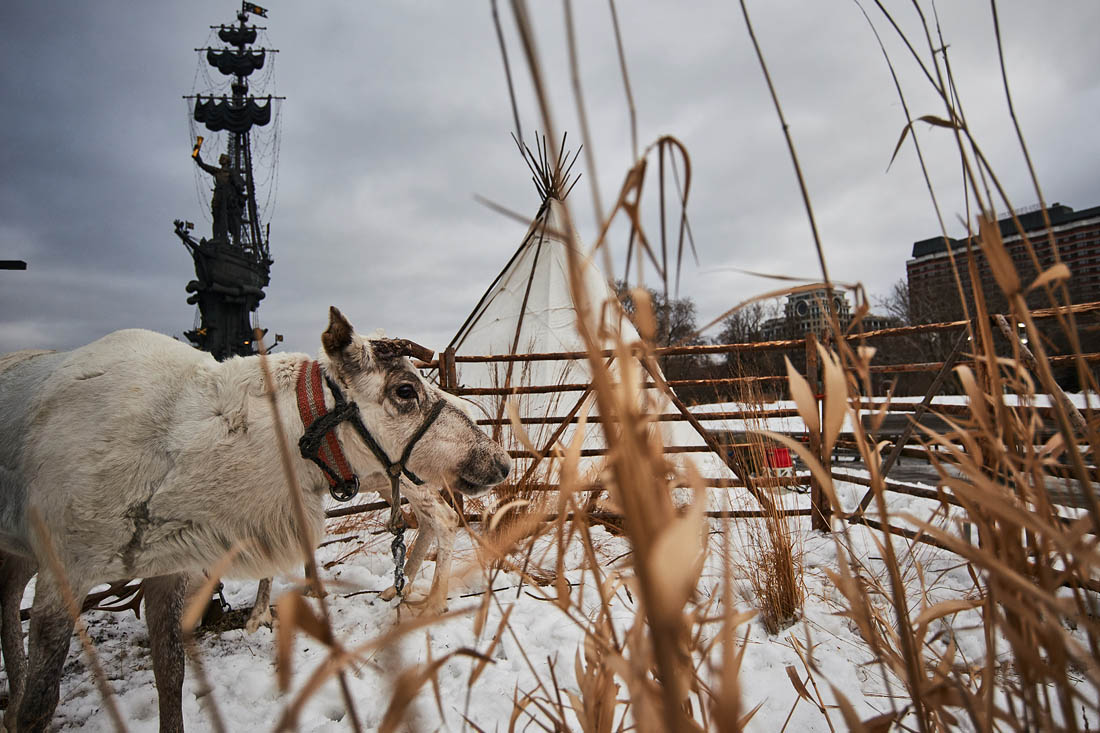 Впрочем, ответ на этот вопрос есть. Город наш, прекрасную пролетарскую столицу, которую десятилетия Советской власти сделали лицом социализма для всего мира – обустраивают оленеводы-показушники под свой провинциальный, колониальный капитализм. Вот и оленей привезли в Музеон – вроде как постоять рядом с «коллегами» (памятниками нашей Эпохи, согнанными туда наподобие «комьюнистишэ гетто» ещё в 1991-м и далее) оленям, а ещё и на фоне Петра Колумбовича, вполне логично. Собянину, верно, сие глаз радует… А вот деревья сажать пока не научились – может, лучше бы оленеводством занялся? Мы, москвичи, готовы ему даже для этого весь Музеон отдать – только памятники оттуда вывезем, вернём на прежние места, а он пускай там и работает. Огородим территорию в стиле гламурного ГУЛАГа (благо дизайнеры такого профиля у него самого есть, и переезд с Петровки «Музея истории Гулага», щедро финансируемого из обоих бюджетов, стоил городу тоже немало), чтоб олени и Собянин не убежали, и будем показывать товарищам иностранцам, как раньше там поблизости в ЦПКиО (ВСНХ) чучела промпартийцев и кулаков выставляли, в 1930-х: "а вот тут у нас мэр-мультимиллионер обитает, табличка на колючей проволоке имеется"…