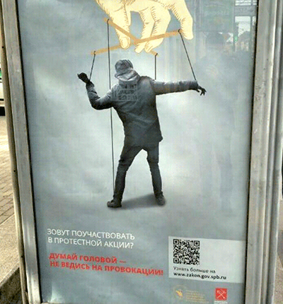 Как сообщает портал "Медиазона", плакаты промаркированы QR-кодом ведущим на сайта Комитета по вопросам законности, правопорядка и безопасности правительства Петербурга.