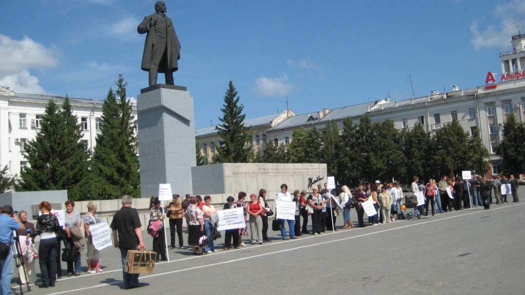 Борьба курганских работников за право на жизнь началась сегодня массовым пикетом на площади Ленина. Мы планировали до 50 участников, но ошиблись - пришли 80.