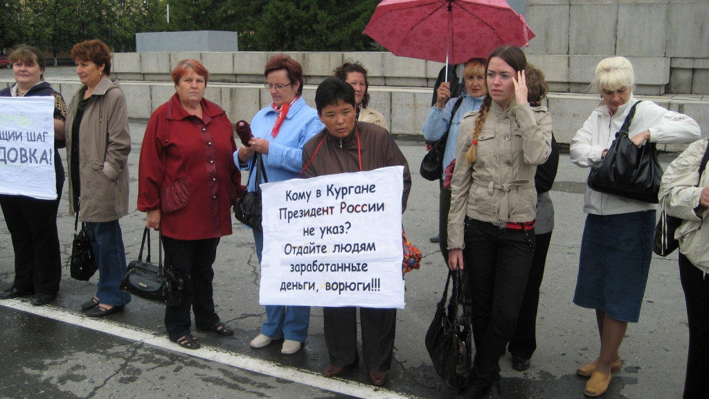 В пикетах на площади им В.И. Ленина, напротив Правительства Курганской области, приняли участие бывшие и работающие работники ОАО «Регион-Автотранс-Курган», ОАО «Промстрой», и некоторых других предприятий Кургана. Например, задолженность по зарплате перед сокращёнными работниками владельцев  ОАО «Регион-Автотранс-Курган» составляет в среднем по 40 тысяч рублей каждому. Как говорят, таких работников - не менее тысячи человек.