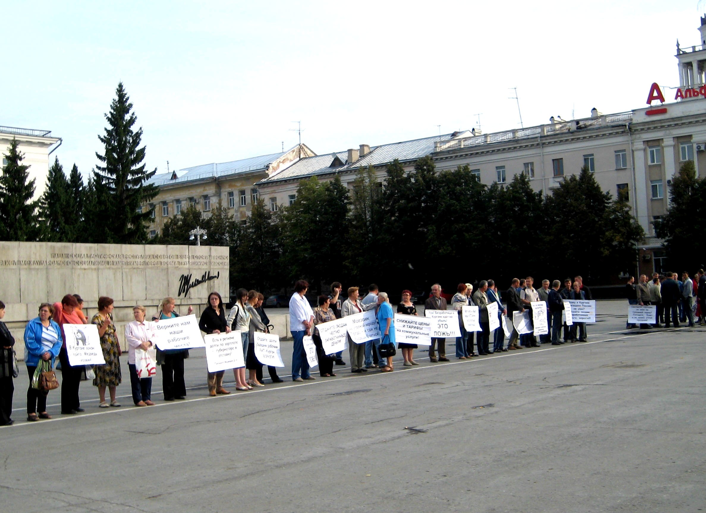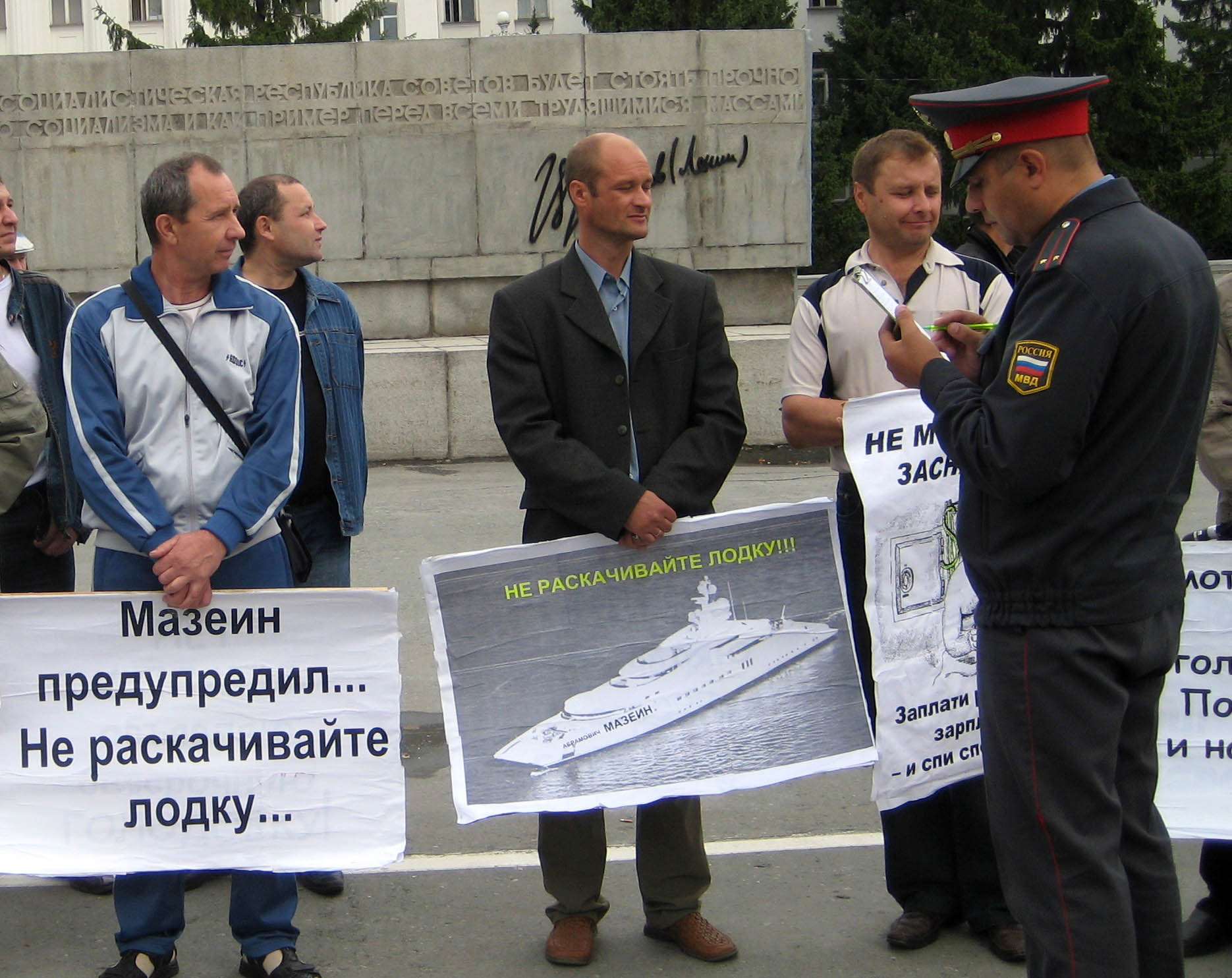 Всю прошлую неделю продолжалось давление на безработных курганцев, требующих от городской власти выплаты полугодовых долгов по зарплате. Руководитель Администрации города Кургана А.Г. Якушев написал письмо профсоюзу «Защита» о якобы незаконности нахождения членов нашего профсоюза здании Администрации города, ссылаясь на ФЗ №54. Начальник милиции общественной безопасности изо дня в день настаивал: «подайте уведомление и пикетируйте на площади, сколько хотите».