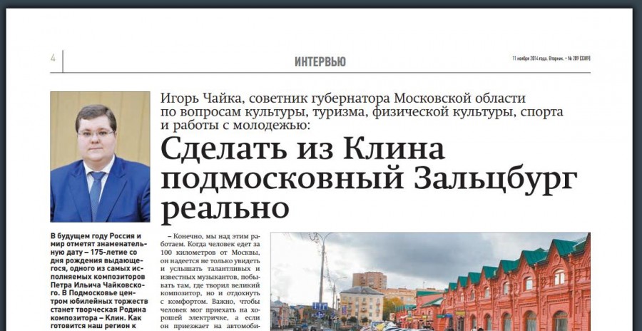 В 2014 году полигон ТБО "Алексинский карьер", расположенный всего в 1,8 км от Клина и в 4-х км от музея П.Чайковского, был исключён из государственного реестра объектов размещения отходов и планировался к закрытию. В это же время сын генерального прокурора Игорь Чайка, являющийся «мусорным королем», стал советником губернатора Подмосковья и плотно занялся Клином, пообещав превратить город Чайковского в Зальцбург.
