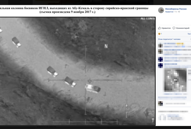 В качестве доказательства российские военные обнародовали в официальном Твиттере и Facebook фотокадры, сделанные, по их словам, во время операции по освобождению сирийского города Абу-Кемаль.