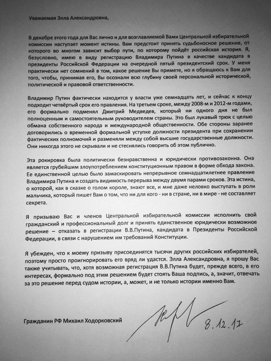 А Ходорковский разве не в курсе что такого понятия как ЦИК просто нет в Конституции? Если судьи назначаются самим Путиным то о каком правовом государстве может идти речь?
