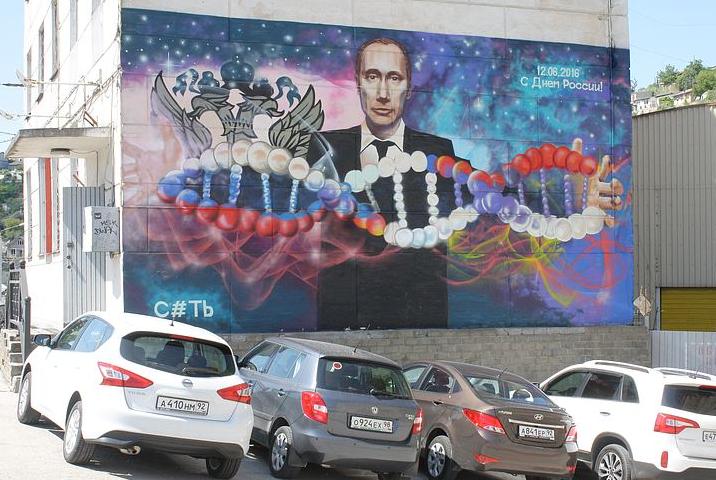 Хотя вот это граффити с Путиным, двойной спиралью ДНК, окрашенной вдобавок в цвета российского триколора, и орлом-мутантом производит сильное впечатление.