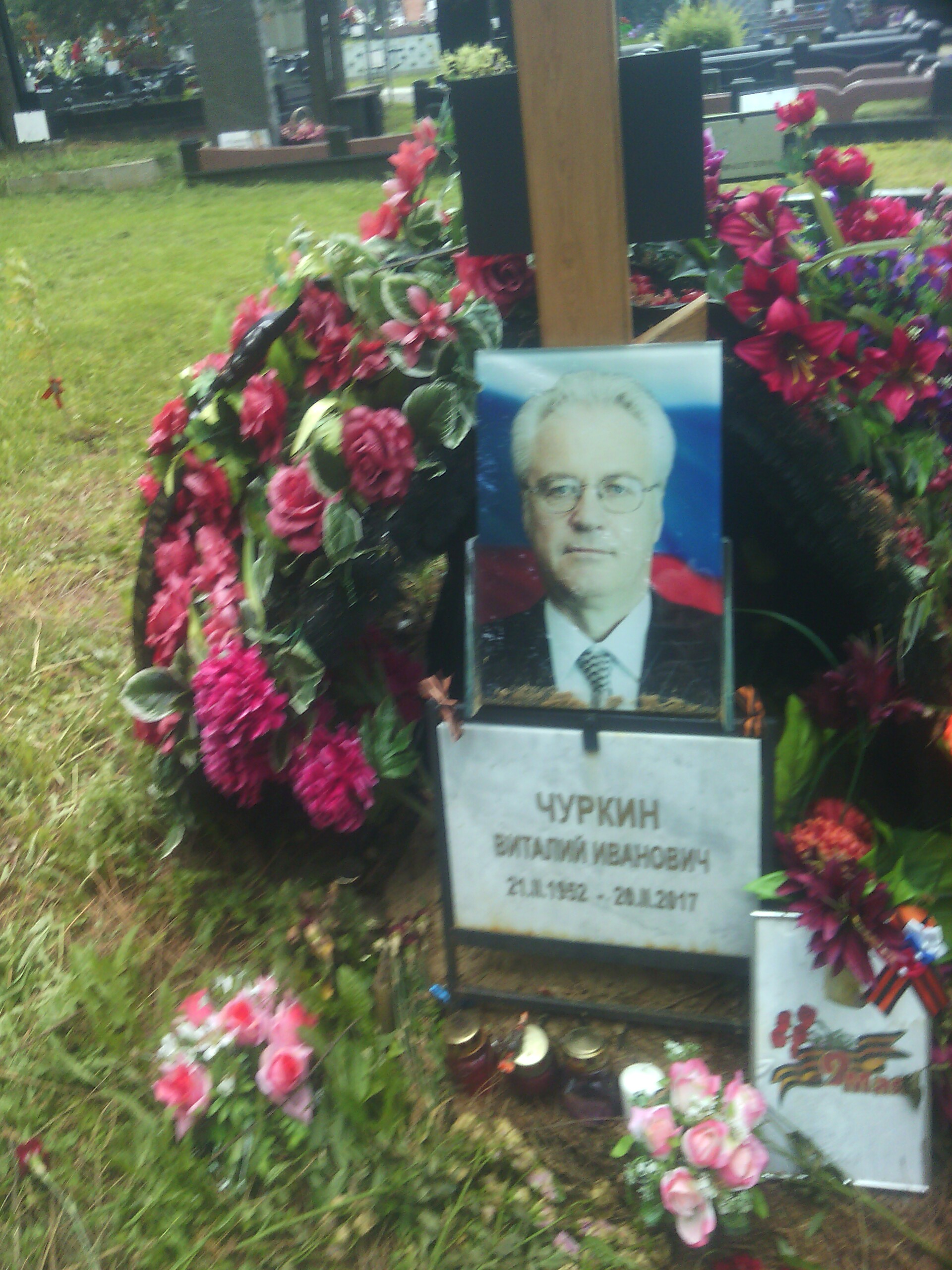 Возвращаясь к автобусной остановке, неожиданно наткнулись на сиротливый холмик постпреда России при ООН Виталия Чуркина.
