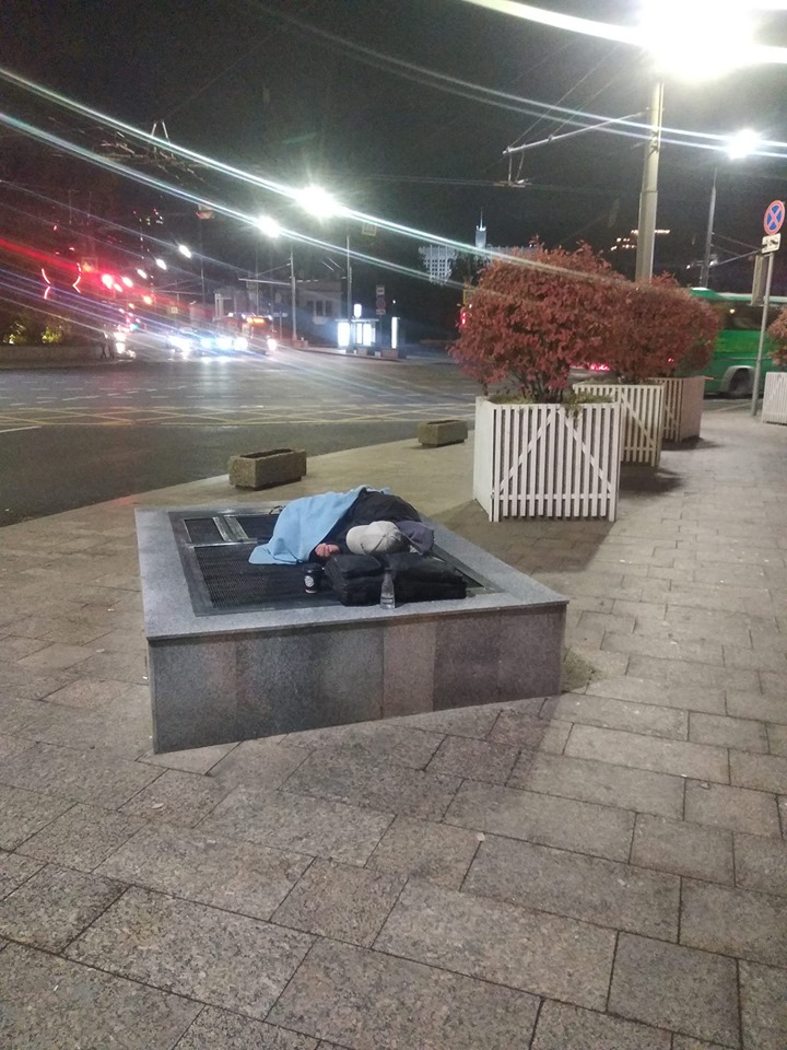 А одна плиточка, на которой он лежит замерзший, стоит столько, что вполне можно было его спасти - миской похлебки или ночевкой в хостеле.