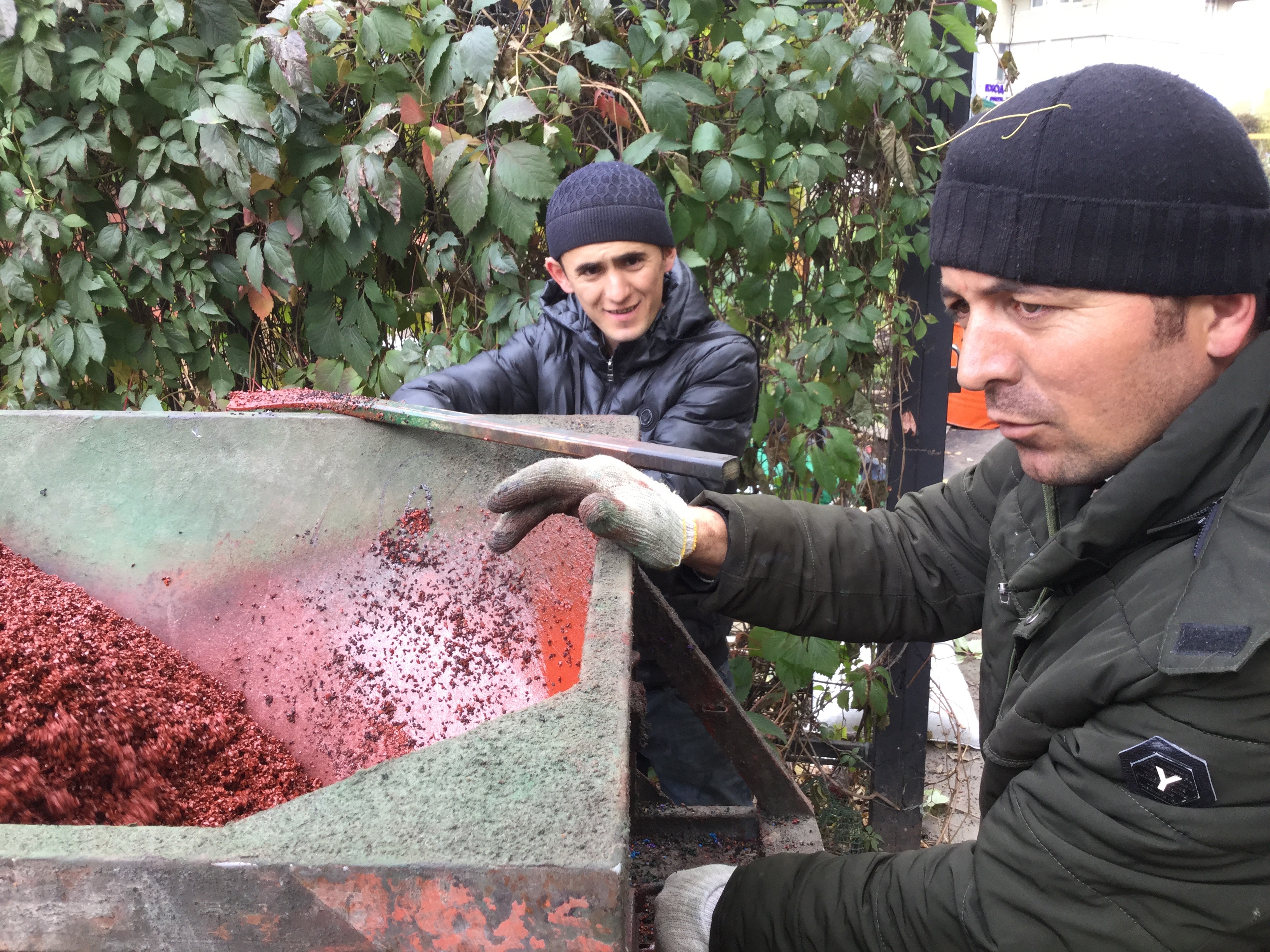 - Мы зафиксировали на фотографиях весь процесс производства резинового покрытия, - продолжает Гребенник, - от измельченной вместе с кордом покрышки до подкрашивания неизвестными красителями и до нанесения на асфальт. Видите, все очень просто, никаких «высоких технологий», да и «технологи» весьма характерные, навряд ли сильно квалифицированные.