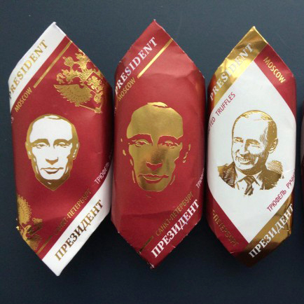 По данным "МБХ Медиа", конфеты "Президент" производит компания "Джи Си — Золотые конфеты" из Санкт-Петербурга. В состав угощения входят водка "Царская Золотая" и перец чили. Производитель отмечает, что в его продукции отражены определяющие черты главы государства: самообладание, спокойствие, харизматичность, беспристрастность, непредсказуемость и остроумие.