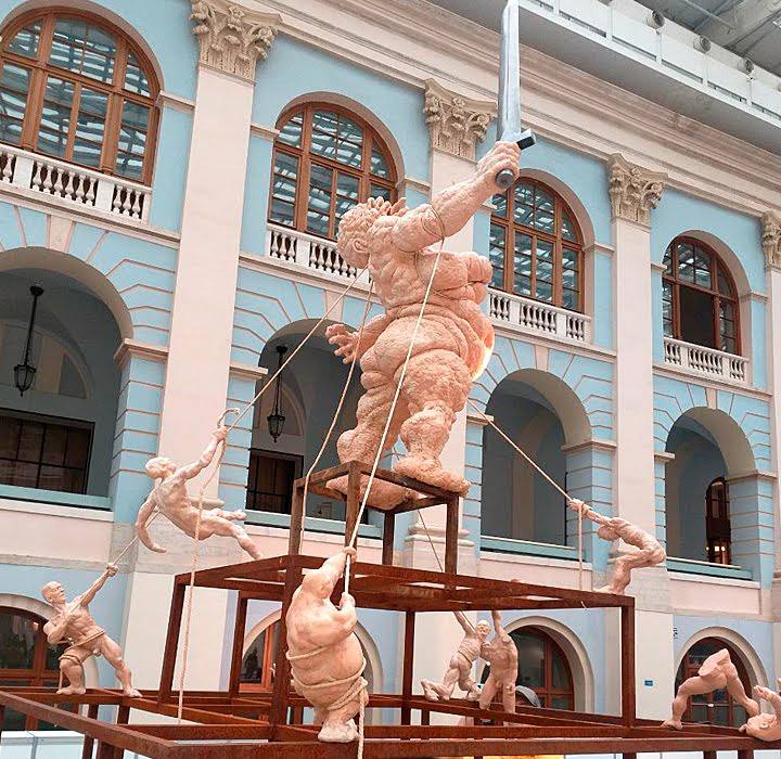 Пародию на «Родину-мать» Евгения Вучетича решили показать москвичам организаторы выставки «Арт Москва» в Гостином дворе.