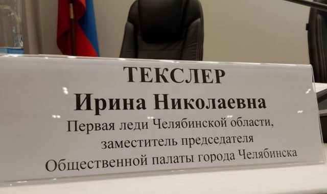 Жена губернатора Челябинской области Алексея Текслера Ирина официально стала первой леди региона, соответствующую должность ввели на встрече городской думы. В частности, надпись о таком статусе была указана на табличке, стоявшей перед супругой губернатора.