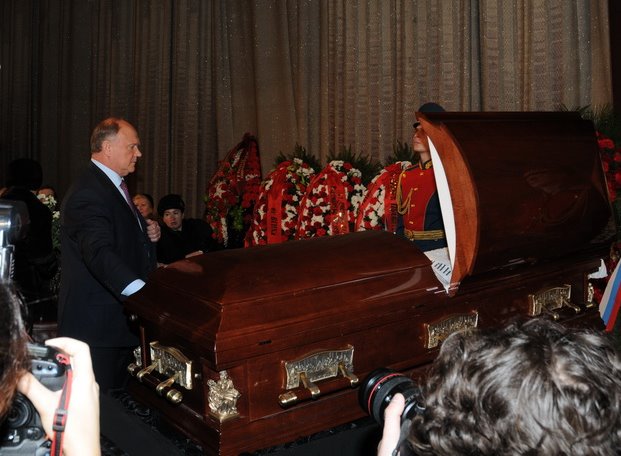 Меткое замечание вспомнилось, когда прочел на официальном сайте КПРФ заголовок: "В Москве прошло прощание с великим русским артистом Вячеславом Васильевичем Тихоновым. В траурной церемонии принял участие лидер КПРФ Геннадий Андреевич Зюганов".