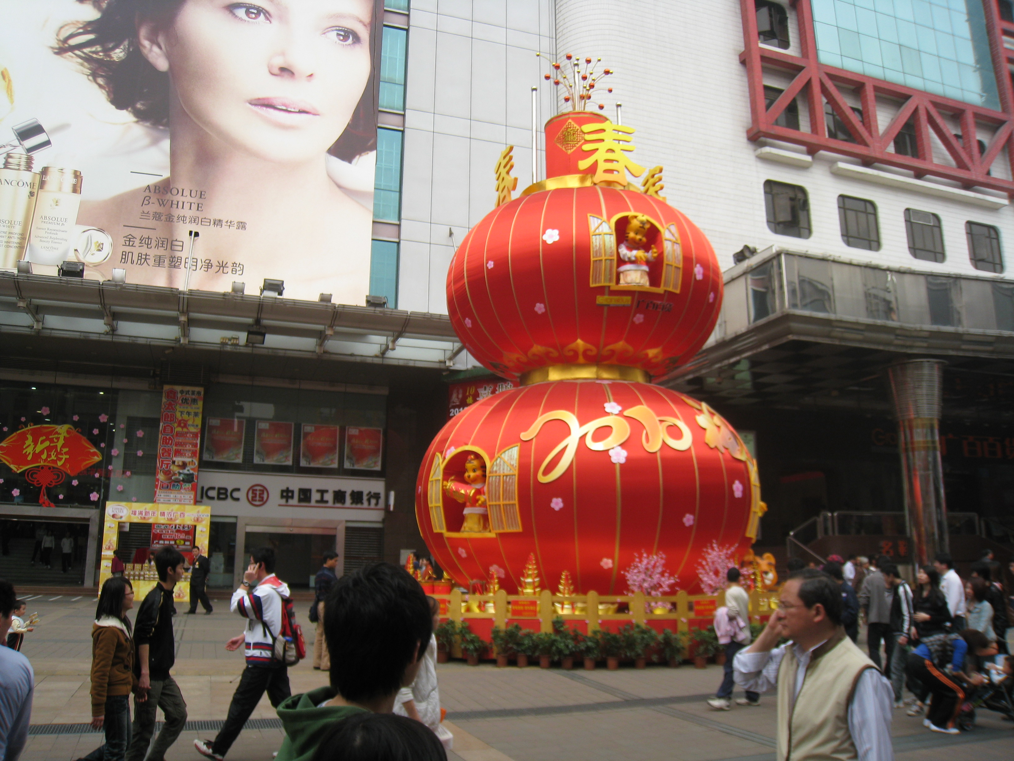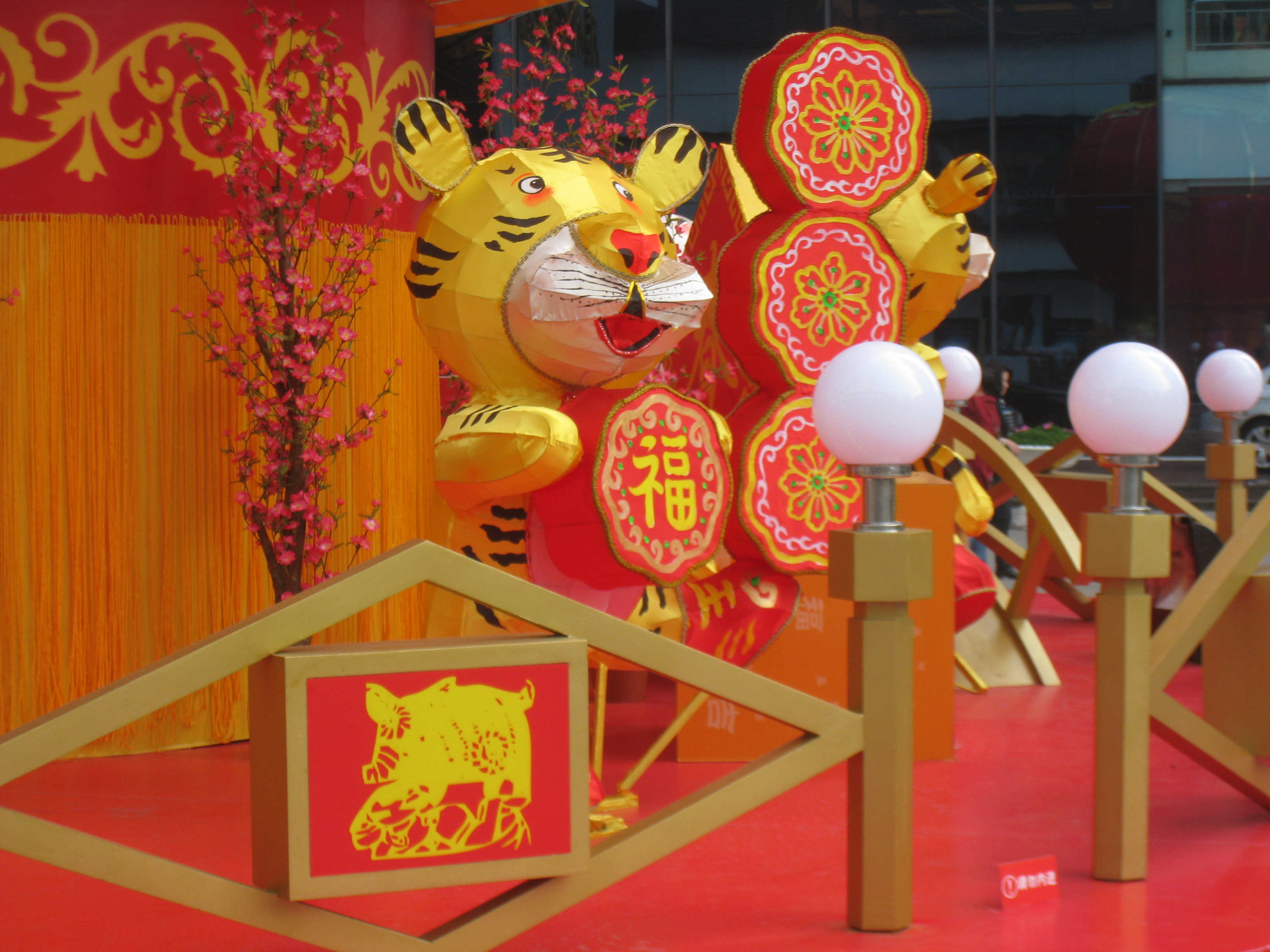 Улицы городов и деревень заполнены торговыми павильонами с яркими красными сувенирами и подарками.
