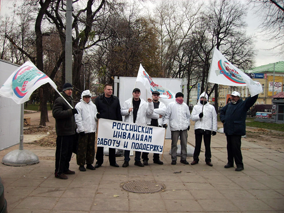 6-7 ноября в центре Москвы активисты Партии социальной справедливости провели пикеты в поддержку российских инвалидов. Участники акции держали в руках плакат «Российским инвалидам - заботу и поддержку!», а также флаги с символикой партии.