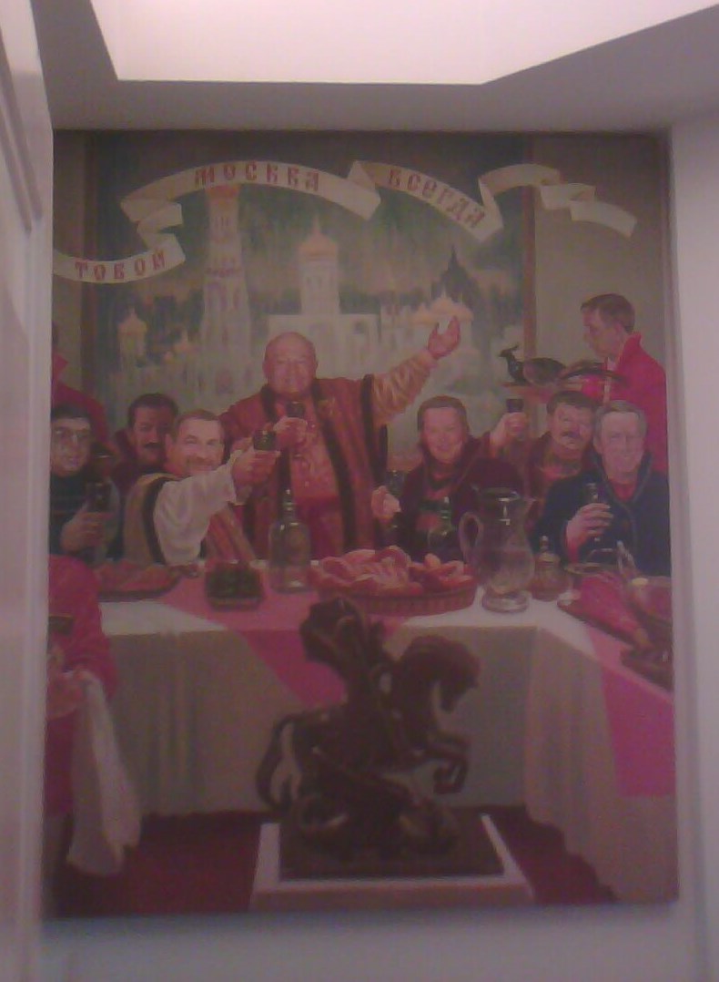 А за сутки до в гостиничном комплексе "Измайлово" на стене в полный рост заснял вот такую чудесную фреску из истории столицы.