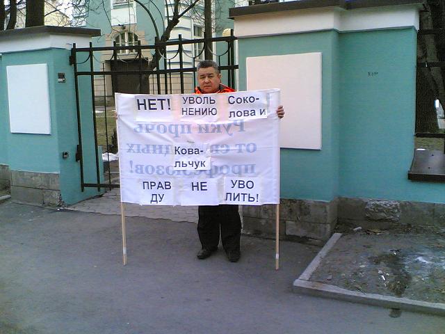 P.S. Приехала милиция, начала читать нотацию о пикетах, но мы им объяснили, что гражданин пикетирует один и можем это делать когда хочет никого не уведомляя.