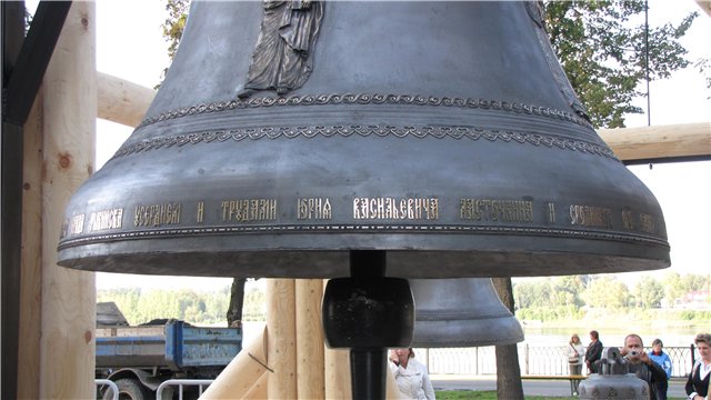 Когда действо закончилось и городской люд рассеялся, мне, как обывателю тоже захотелось рассмотреть поближе новые колокола. И вдруг. О ужас! На самом большом, который 300 пудов, читаю надпись "Усердием и трудами Юрия Васильевича Ласточкина"...