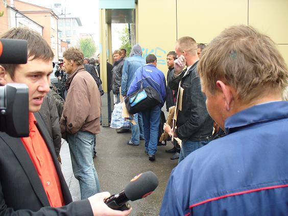Вблизи места проведения (новостройная «Чайка-плаза» на углу Краснопролетарской и Селезневки) - никакой милиции, но только гражданские иномарки, с весьма часто из них выглядывающими мрачными мордами. Глядят как раз в ту сторону, куда иду, по-партизански подобравшись к концу улицы через детский парк. Практически одновременно со мной в сторону уже собравшихся делегатов НА и прессы выдвигается из Нововоротниковского переулка весьма организованно и бодро колонна бомжей с высоко поднятыми картонками. На картонках пьяно нацарапанные шариковой ручкой едва читаемые надписи «Касьянов - наш брат» и что-то в том же духе... А ведь кто-то большие деньги получает за такой «чёрный пиар». Милиция, понятно, не спешит разгонять несанкционированный пикет (интересно, с какой бы скоростью они разогнали аналогичную нацбольскую акцию?), дает достаточно времени прессе, которой даже больше чем бомжей, сфотографировать и заснять статистов.