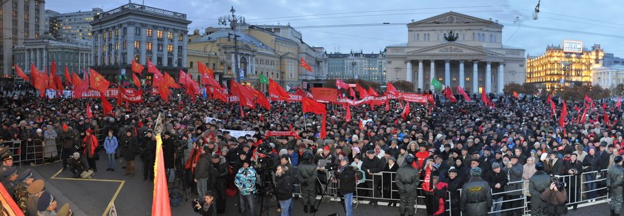 - Ну, с цифрами и вообще точными данными у товарища Зюганова всегда была большая напряженка, - полагает главный редактор ФОРУМа.мск Анатолий Баранов. - Как-то в течение одного месяца он назвал три разных количества собственных внуков. Вождь вообще часто заговаривается. Вот и сейчас на фото, заметим, с официального сайта КПРФ, несмотря на ненавязчивый фотошоп, видно, что полиция не соврала, и на площади больше четырех тысяч человек просто не может поместиться. Где Зюганов увидал 50 тысяч? Впрочем, среди высоких руководителей партии москвичей нет, даже в руководстве столичного горкома сидит Рашкин из Саратова - после разгона городской парторганизации ждать какой-то массовости было бы очень самонадеянно. Разве что Юра Афонин из Тулы подгонит "карликов" на автобусах... В других городах митинги и шествия были еще более жидкими, чем в столице. Что ставит под сомнение оптимистические прогнозы для компартии на выборах - получат примерно как обычно, будут ныть о фальсификациях, но дальше нытья дело не двинется. И на следующее 7 ноября Зюганов, путаясь в цифрах и собственных словах, вновь расскажет о грядущих свершениях... Если 20 лет люди приходят слушать эту околесицу тысячами, то почему не повторить это и в 21-й раз? Попы в церкви уже 2 тысячи лет талдычат "чаю воскресения мертвых и жизни будущего века" - и ничего, народу не убавляется. Кстати, для пополнения партийной кассы можно уже, по примеру старших товарищей, и свечки продавать на митингах.