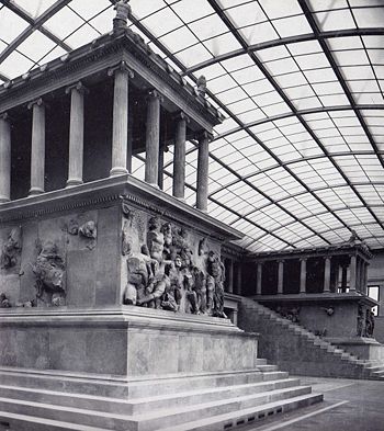 Однако, выпрыгивая из штанов по поводу исторических лиц, неплохо бы подучить историю. Скажем, Пергамский алтарь. С чего это они взяли, что Пергамский алтарь разрушен? Он замечательным образом в конце 19 века был отреставрирован и перевезен в город Берлин Карлом Хуманом, где под него в центре имперской столицы, на Музейном острове был построен специальный Пергамский музей. Этот музей как и другие объекты музейного острова стали символом возрождающейся империи Гогенцоллернов, а позже Третьего Рейха - в каком-то смысле в пику лондонскому Британскому музею с выставленными там фрагментами Парфенона. Работа германских археологов и инженеров действительно поражает.