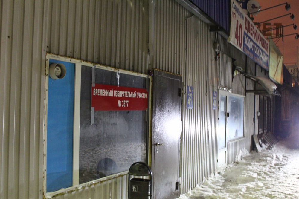 Поселок Мосрентген, ныне географический центр Москвы, в 10 км от МКАДа. Обычный строительный рынок. В этих дебрях, между торговыми палатками с гвоздями, дверьми и шаурмой, в таком же павильончике № 41, расположился избирательный участок №3377.