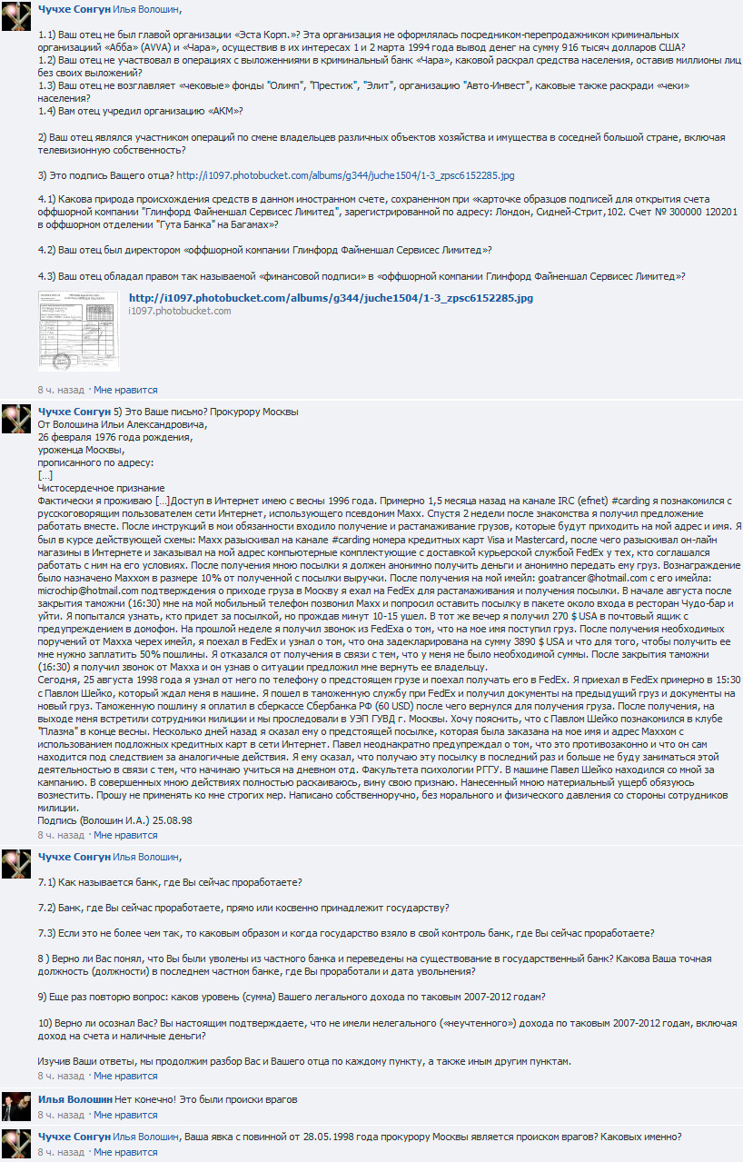 напечатавшие полный текст чистосердечное признания Волошина-младшего, направленного им на имя прокурора Москвы.