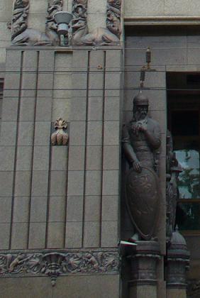 Его сломали. Он утонул в пыли под ковшами экскаваторов, остро, зубасто ползавших по нему, словно стая волков по телу загнанного и растерзанного ими оленя. Стройного оленя. Оленя в стиле "неоконструктивизм" - 1916-го года постройки. Был в том здании и русский патриотизм дореволюционного, модернизированного образца - что выразилось в статуях у входа. Был и модерн сам по себе в отделке - диковинные зверушки восседали на стенах. Верблюды на отдыхе, белки...