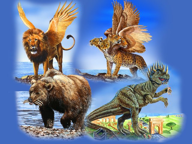 Эггрегором Российской империи является уицраор (демон великой империи) по имени Жругр. Он правит, выбирая себе аватару – человекоорудие. Последней великой аваторой Жругра был Сталин (Ленин был аваторой эггрегора новой мировой квазирелигии). И Горбачев, и Ельцин – следуя логике системе Андреева - отказались быть человекоорудиями Жругра, и были им низринуты. Путин согласился и получил две военные победы на Кавказе и две победы над демократическим движением. Но Жругр империи издыхает, и Путин теряет силы и поддержку. Дряхлого Жругра вот-вот прикончит эггрегор Русского национального государства (последовательные пожирания уицраоров блестяще описаны пророком Даниилом – см. иллюстрацию).