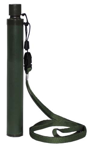 Карманный «Фильтрующий карандаш». Очищает воду от болезнетворных микроорганизмов, ржавчины, хлора и других примесей, улучшает вкус. Производительность: 800 литров. Масса: 54 грамма. Габариты: 180 х 25 мм в диаметре. В комплект входят запорная крышка и мундштук.
