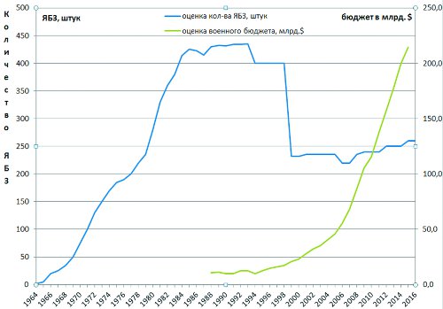Графики оценок количества ядерных боеголовок и военного бюджета КНР с 1964 года и по наше время показывают эти странности очень наглядно.