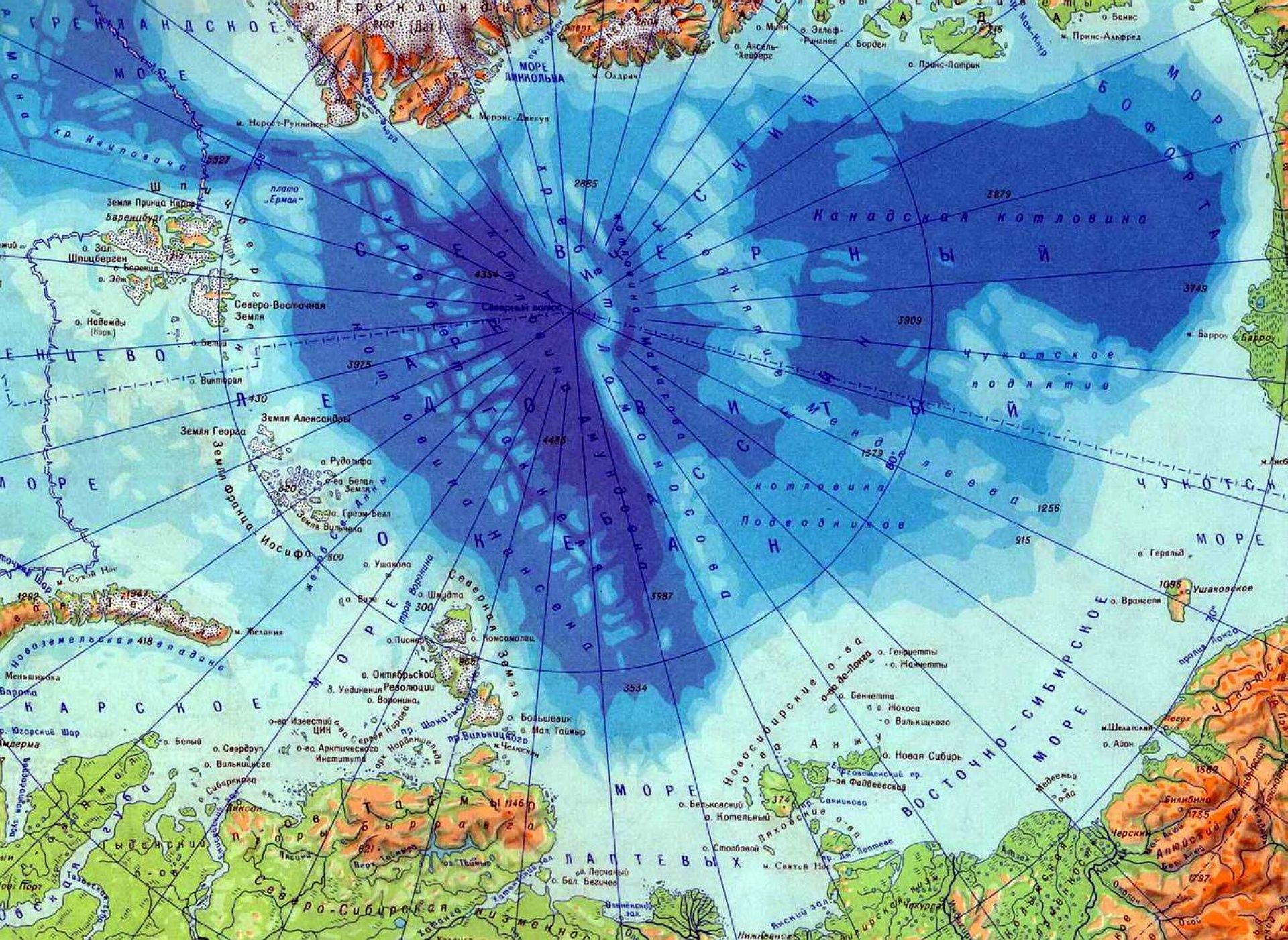 Карта: Северный Ледовитый океан, архипелаг Шпицберген, Земля Франца-Иосифа, Новая Земля, Северная Земля, Новосибирские острова, северные моря Ледовитого океана.