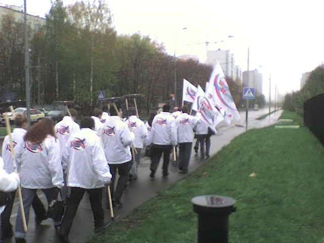 Отвели для субботника ПСС местные власти сравнительно небольшой участок газонов, детских площадок - как говорится, "примыкающих территорий". Но такого энтузиазма никто не ожидал. Сама уборка территории примерно метров в сто размахом заняла не более получаса. При этом вдохновение от согревающих в такой промозглый день действий сподвигло даже водрузить флаг ПСС на одном из деревьев посреди убираемой территории.