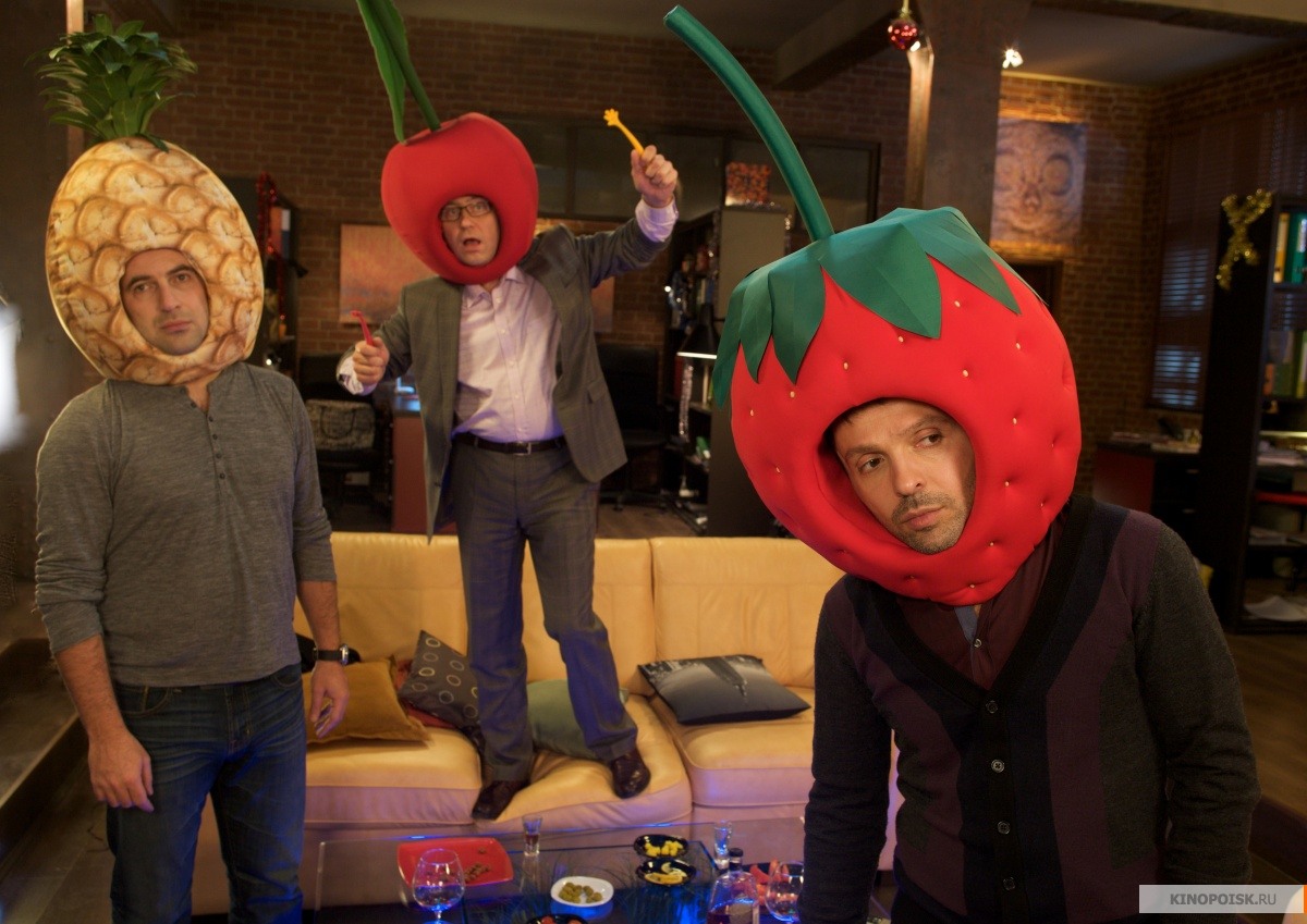 Их разговоры – настолько разговорный и некинематографичекий жанр, что их можно смело бросить… нет, не в корзину (ибо других изюминок в таком современно-расеянском кино не бывает), а в первую серию. Я и не помню эти разговоры уже – одноминутки-шутки. Я больше смотрел на интерьер, благо - крупным планом. В каждом офысе рекламной компании быть должна кухня – вот сердце уюта, в том числе и новогоднего. И друзья пьют коньяк, и говорят, как мы говорили с одноклассниками (а нас было тоже, представьте четверо: сын народного артиста СССР Серёга Лановой, Андрюха Некрасов, Димка Михайлов и ваш непокорный) говорили на первом-втором курсах. Алкоголь помогает снимать маску наслоившихся лет – тут всё про секс, любовниц и выложишь. Впрочем, то как мы любили друг друга после школы – как по-дружески могли учинить шутейное избиение, вряд ли бы получилось показать квартету. Ну, просто это из настоящей жизни: (проговорюсь штришком из будущей книги, год 1992-й, осень) когда все из нашего квартета поступили в вузы кроме меня, и двое из него пришли проведать работающего лаборантом в родной 91-й школе, они от избытка чувств и таким образом прогоняя жалость, разули меня и остригли волосы на ногах, куда достали ножницами. Такое не выдумаешь – вот настоящая дружба и импровизация несценических хохмачей, так сказать…